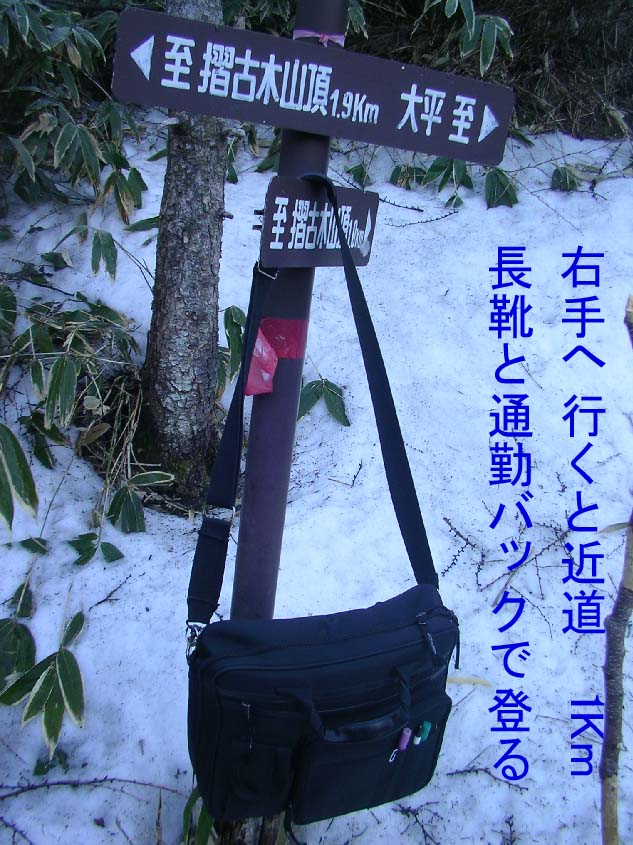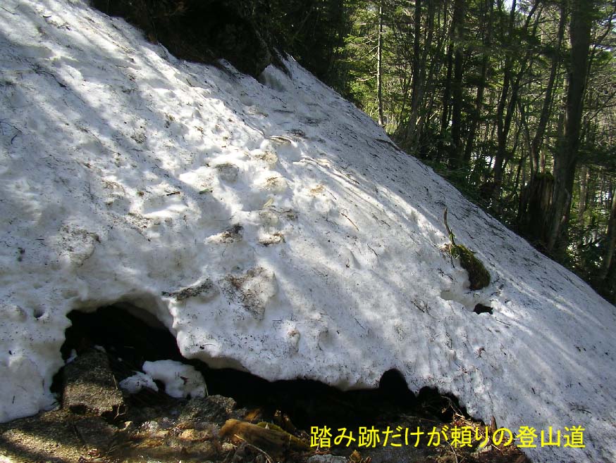登山道はさほど急激な個所はないが、高度が上がるにつれて雪道となり、何度となく落とし穴に足を取られる。