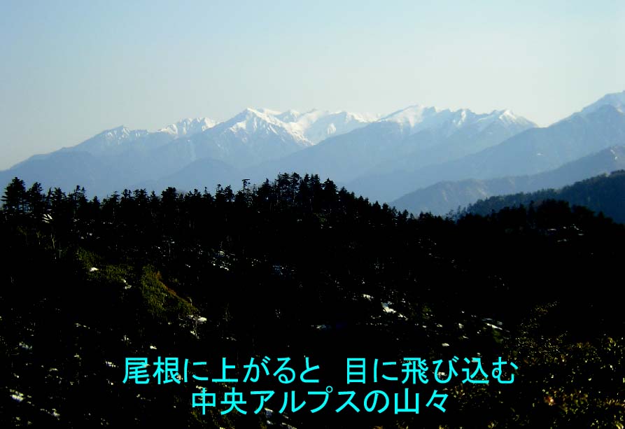 山頂まで一キロの所に道しるべがある。近道は1キロ、左う回路は1,9キロとある。近道を行く。やがて尾根に出るが、踏み跡がはっきりしない。右が山頂方面と思い行ってみるが違うようだ。次の景色を見て引き返す。