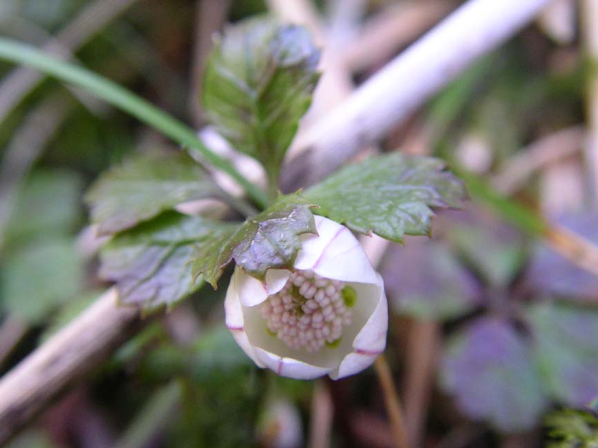 反対の左方面へ行ってみるが、踏み跡はあるが山頂がどちらか不明で引き返す。また左のほうへ行くと薄い標識があり、よーく見ると山頂は左だと判明した。