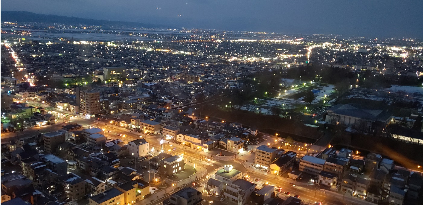 山形駅前ビルの眺望 山寺は 右手奥 山の向こう辺り